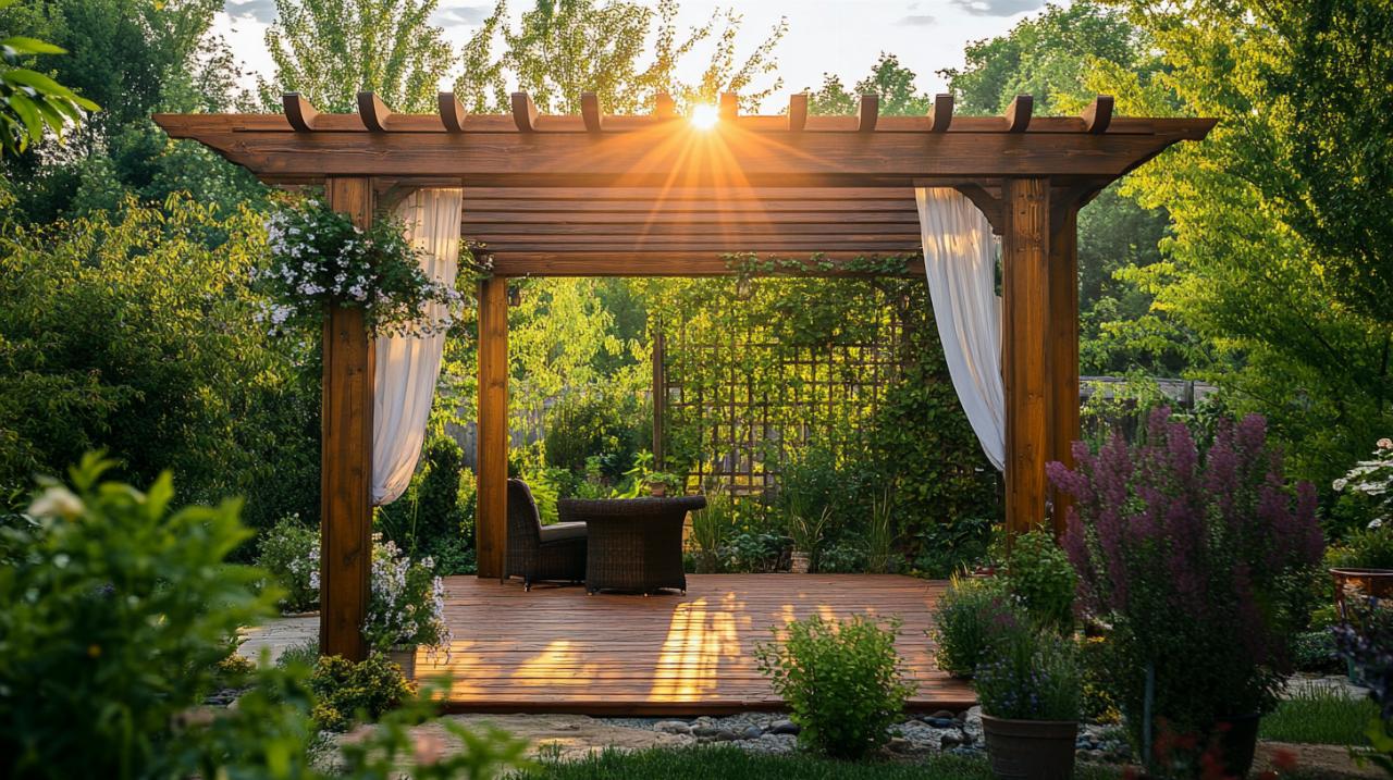 Les plantes grimpantes représentent une solution à la fois esthétique et évolutive pour ombrager une pergola en bois. La vigne vierge, la glycine et le jasmin figurent parmi les espèces les plus appréciées pour leur capacité à créer une ombre délicate tout en parfumant agréablement l'espace. Ces végétaux nécessitent un guidage régulier et une taille appropriée pour bien se développer sur la structure, mais leur entretien reste accessible même aux jardiniers débutants. Le rosier grimpant constitue également une option charmante qui ajoute une dimension florale remarquable à votre terrasse. Ces plantes offrent une excellente protection solaire durant les mois chauds, bien que leur efficacité contre la pluie demeure limitée. Leur durée de vie s'étend sur le long terme si elles bénéficient d'un entretien régulier, et leur coût d'installation reste relativement faible comparé aux solutions synthétiques. L'un des atouts majeurs de cette approche réside dans son caractère authentique qui renforce le lien entre votre espace de vie extérieur et la nature environnante.